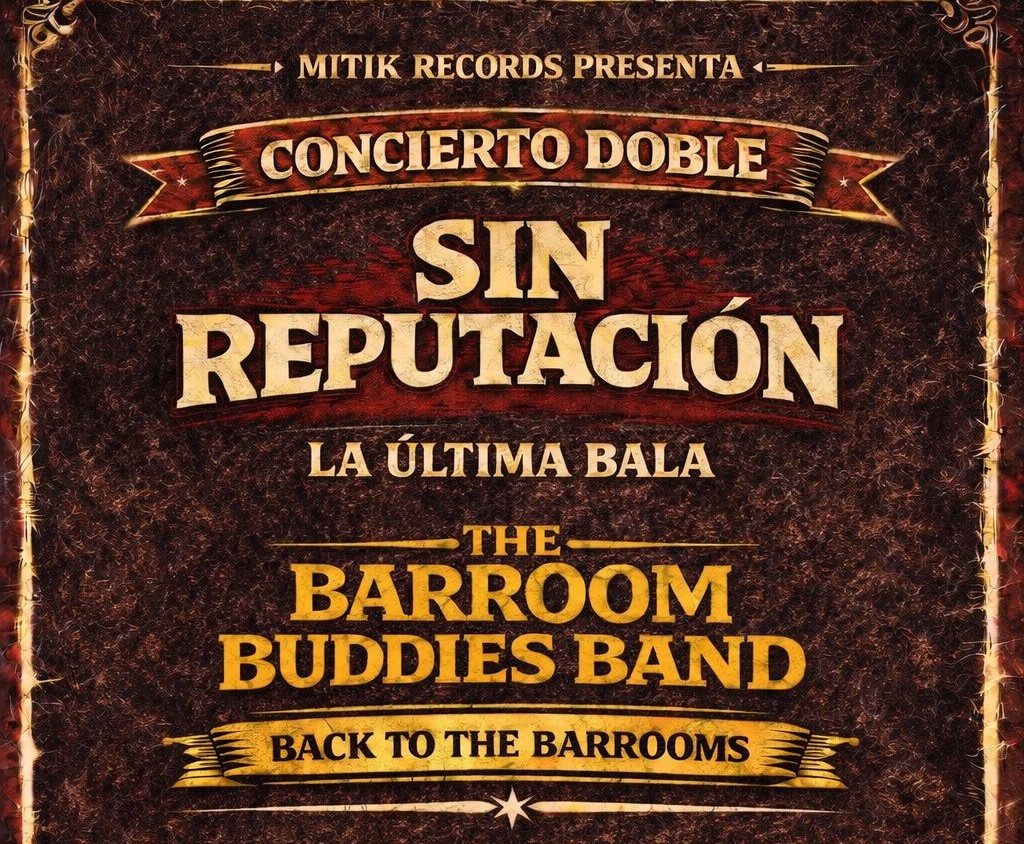 Dos bandas con un denominador común, su compañía de discos, MITIK RECORDS, que unen fuerzas para presentar en concierto sus últimos trabajos discográficos. THE BARROOM BUDDIES BAND con su recién “Back to the barrooms” y SIN REPUTACIÓN con nuevo single “Fuerza rocker”, además de cerrar la gira del álbum “La última bala” con el que ha estado girando durante 2025.